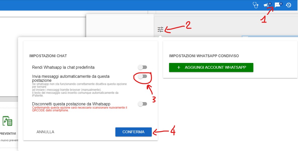 - i messaggi WhatsApp inviati da iPatente Cloud partiranno solo da quella postazione